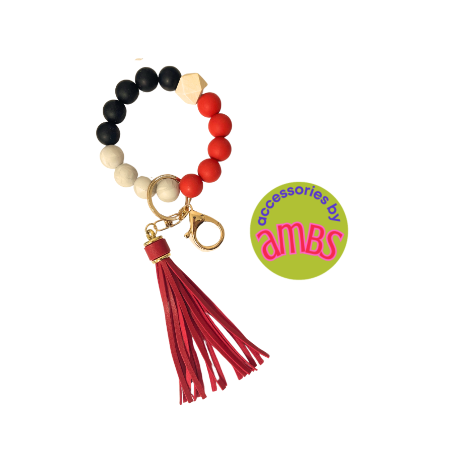 Introducing the ultimate accessory for anyone who wants to keep up with their keys in a stylish way - our Beaded Bracelet Keychain with tassels! Available in multiple color variations this keychain is not only functional, but also super cute. Say goodbye to boring keychains and hello to a fun new way to keep your keys in check!