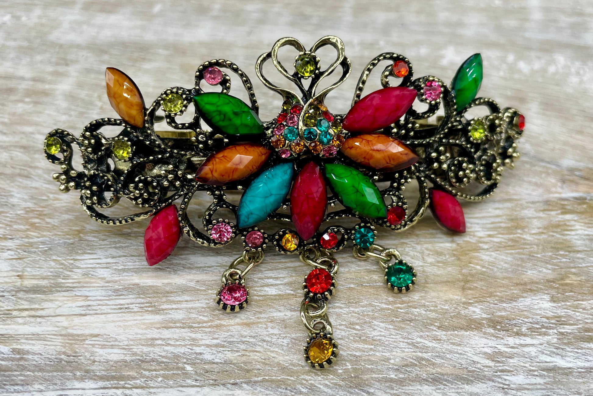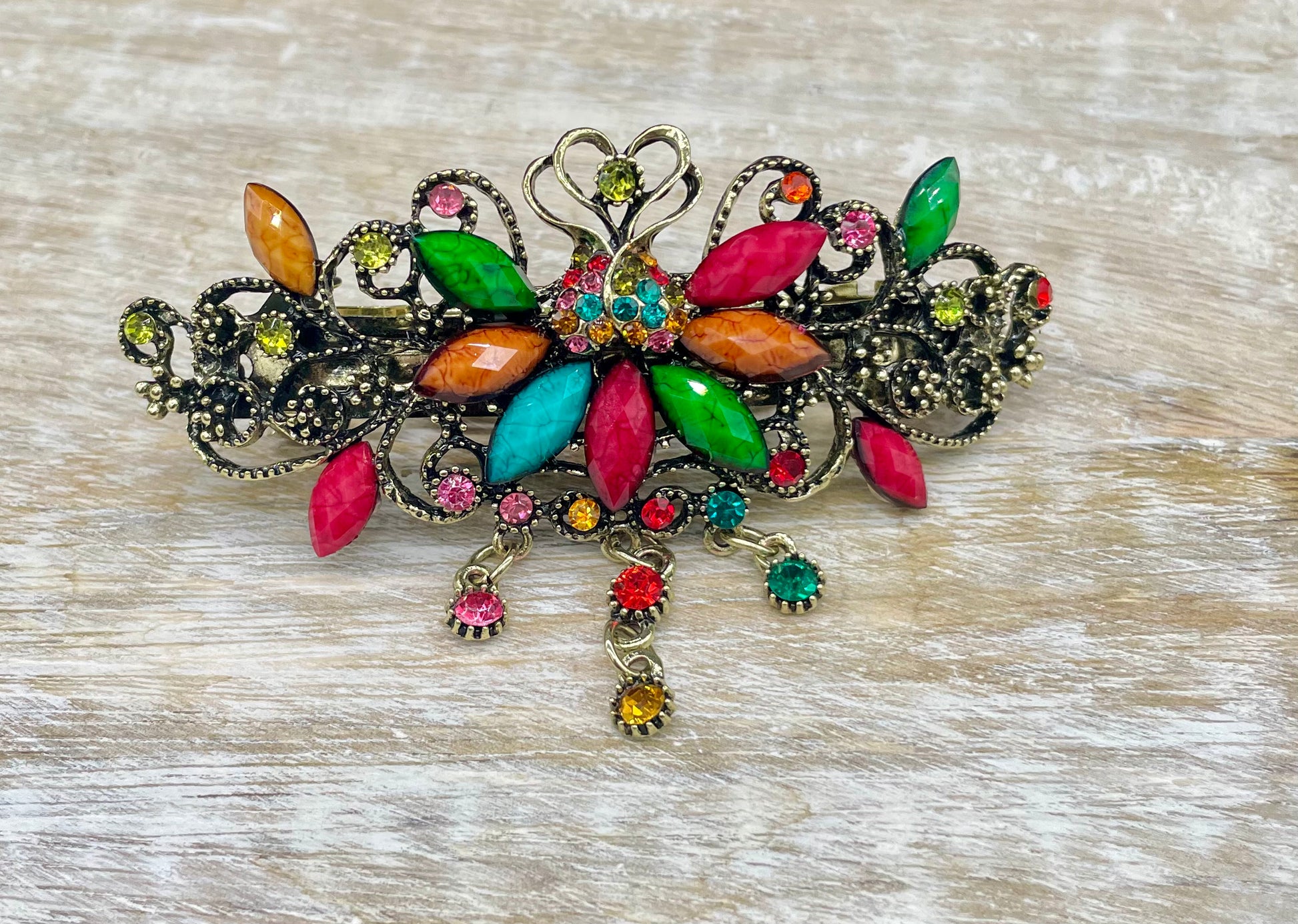 Add flair to your locks with Boho Glam Hair Accessories. Choose between a metal jeweled floral hair clip or a metal jeweled hair barrette. Make a statement with this sophisticated and gorgeous hair accessories.