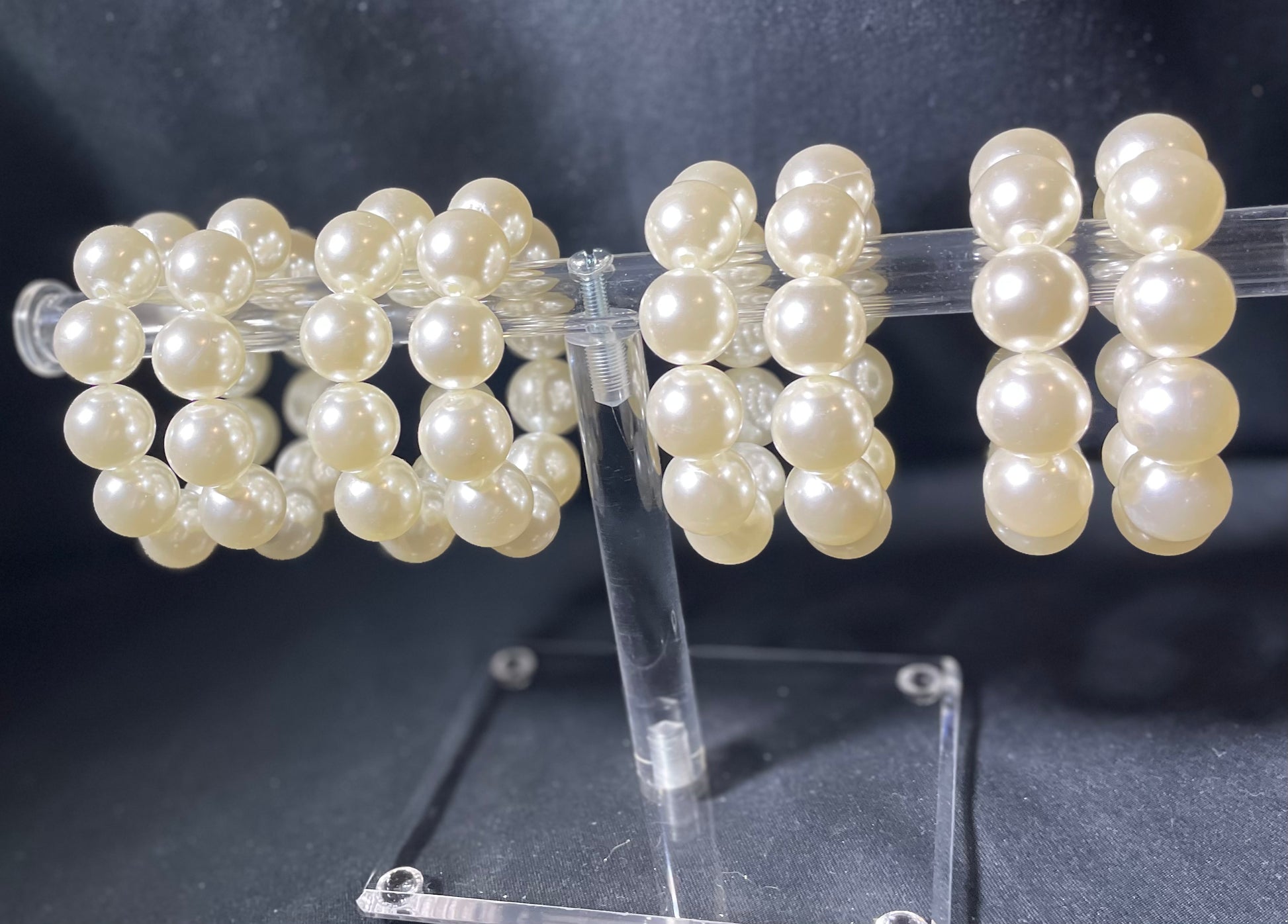 Introducing the Classic Pearl Scrunchie, the ultimate multitasking hair accessory that will elevate your messy buns and ponytails to the next level. Wear it in your hair or as a trendy bracelet - it's a must-have staple that will add a touch of elegance and playfulness to any outfit. Grab yours now!