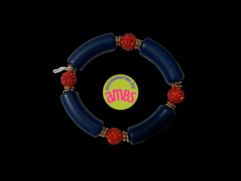 Get ready to show off your team spirit with our Color Block Bracelet! Featuring a trendy navy and crystal orange design, this adjustable, stretchy bracelet adds a pop of color to any game day outfit. Perfect for any sporty fashionista!