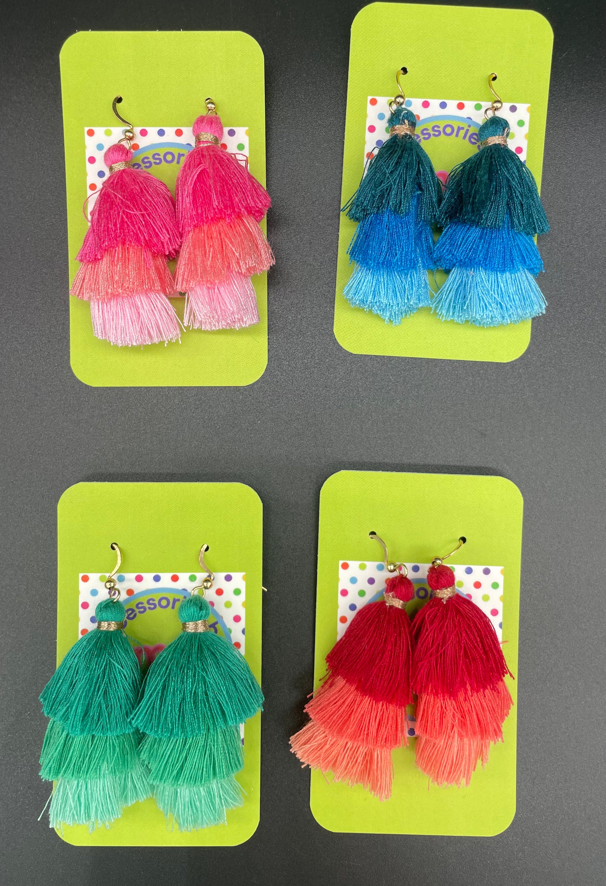 With their bold color block design, these tassel earrings add a touch of vintage flair to any outfit. Stand out and make a statement with these retro-inspired earrings.