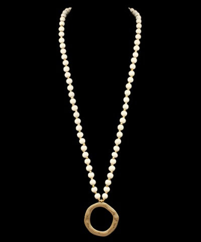 Expertly crafted, this Cream Wooden Beaded Necklace features a stunning gold statement ring and intricate wooden beads. Designed with a professional touch and elegant simplicity, it adds a touch of sophistication to any outfit. Elevate your style with this eye-catching accessory.