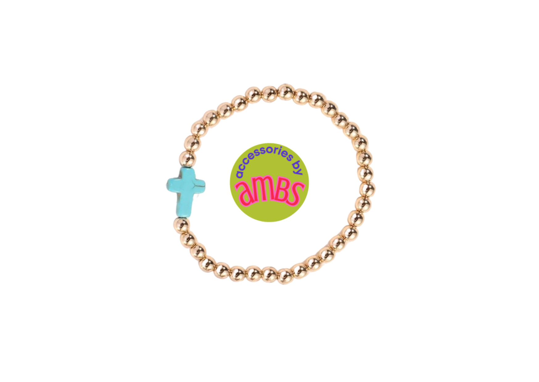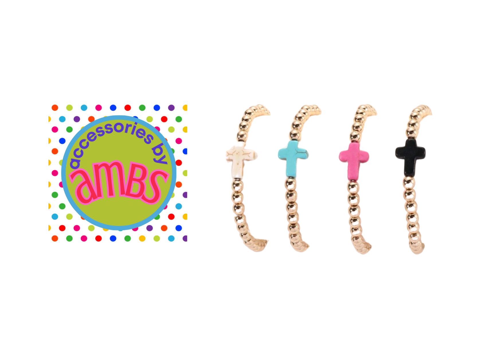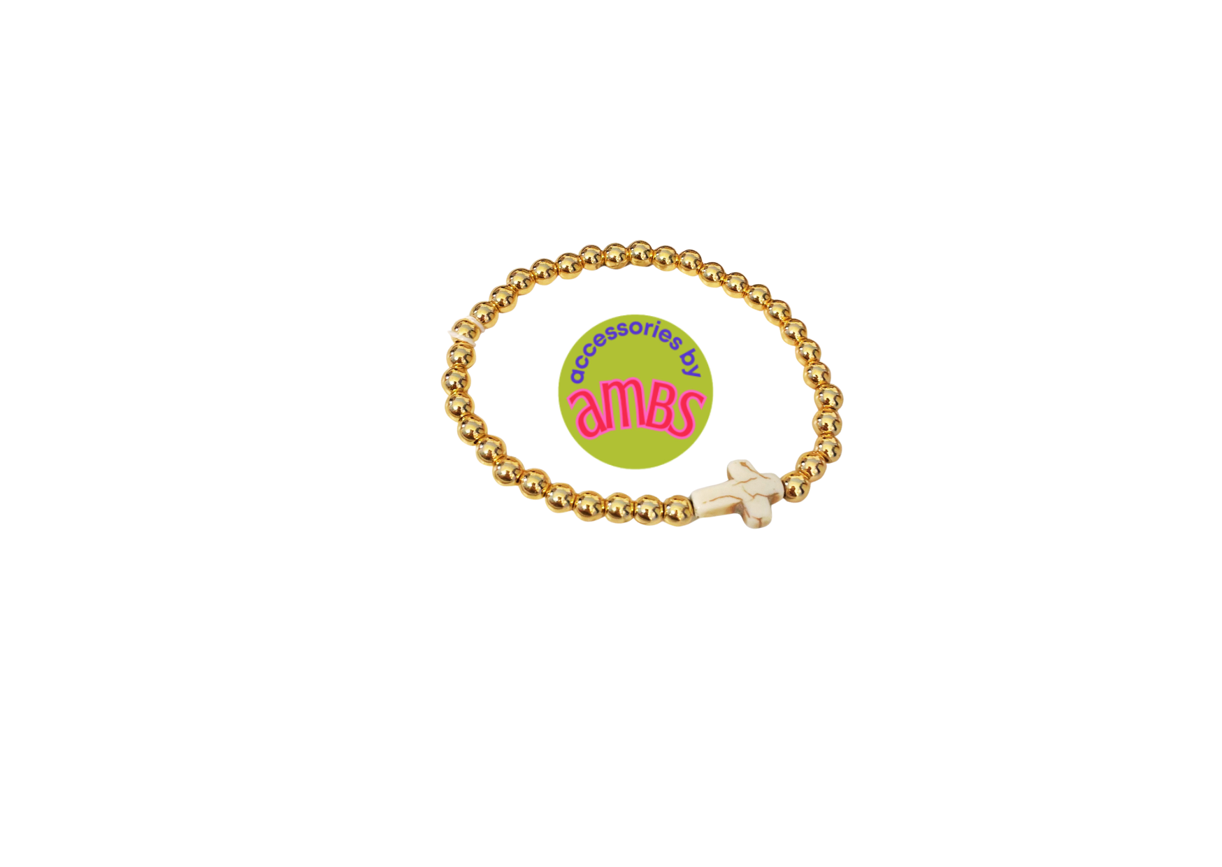 Let your light shine this Easter season with our beautiful cross bracelet. This statement piece features gold beads and a stone cross, perfect for adding a touch of elegance to any outfit. The stretchy design ensures a comfortable fit for all wrist sizes. Show your faith with this stunning accessory!