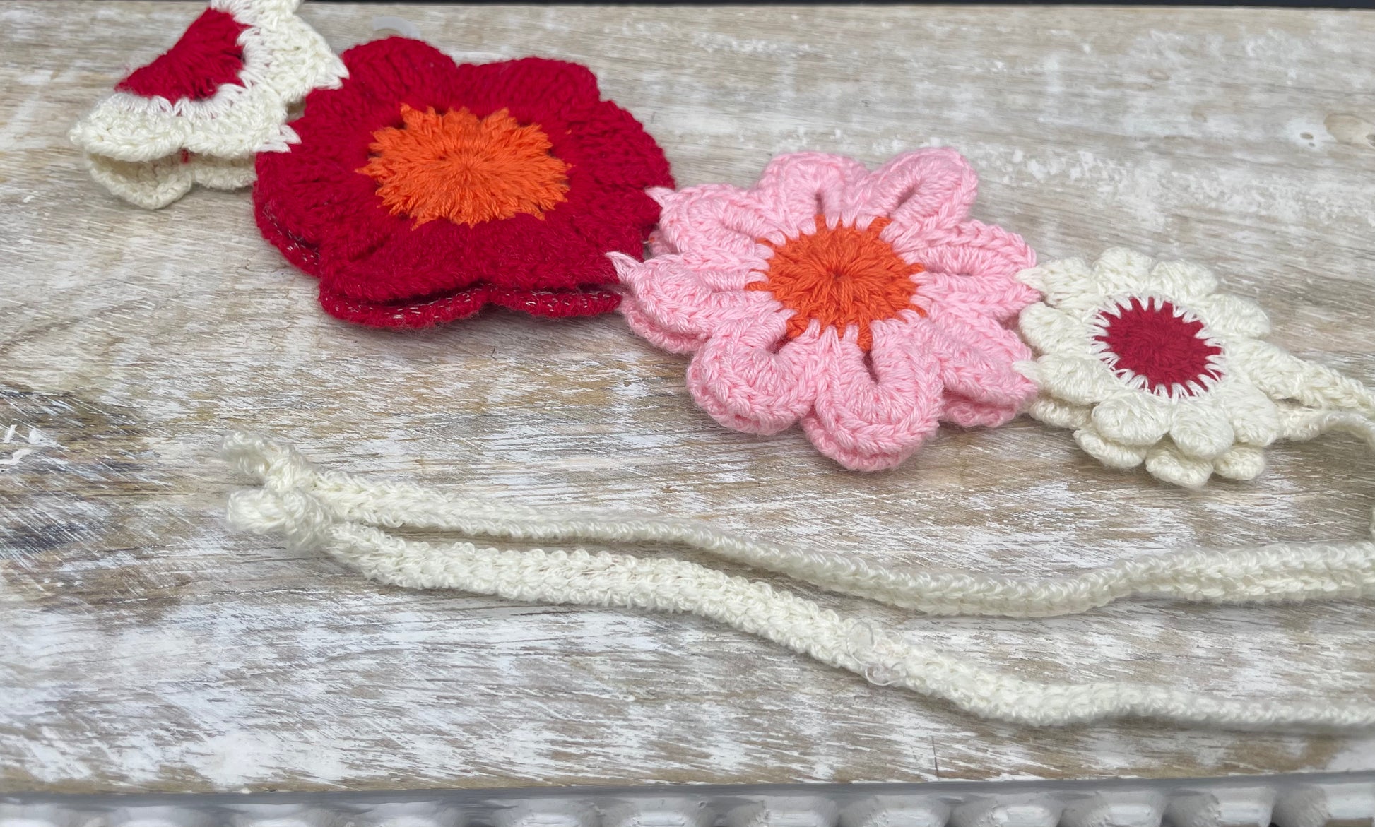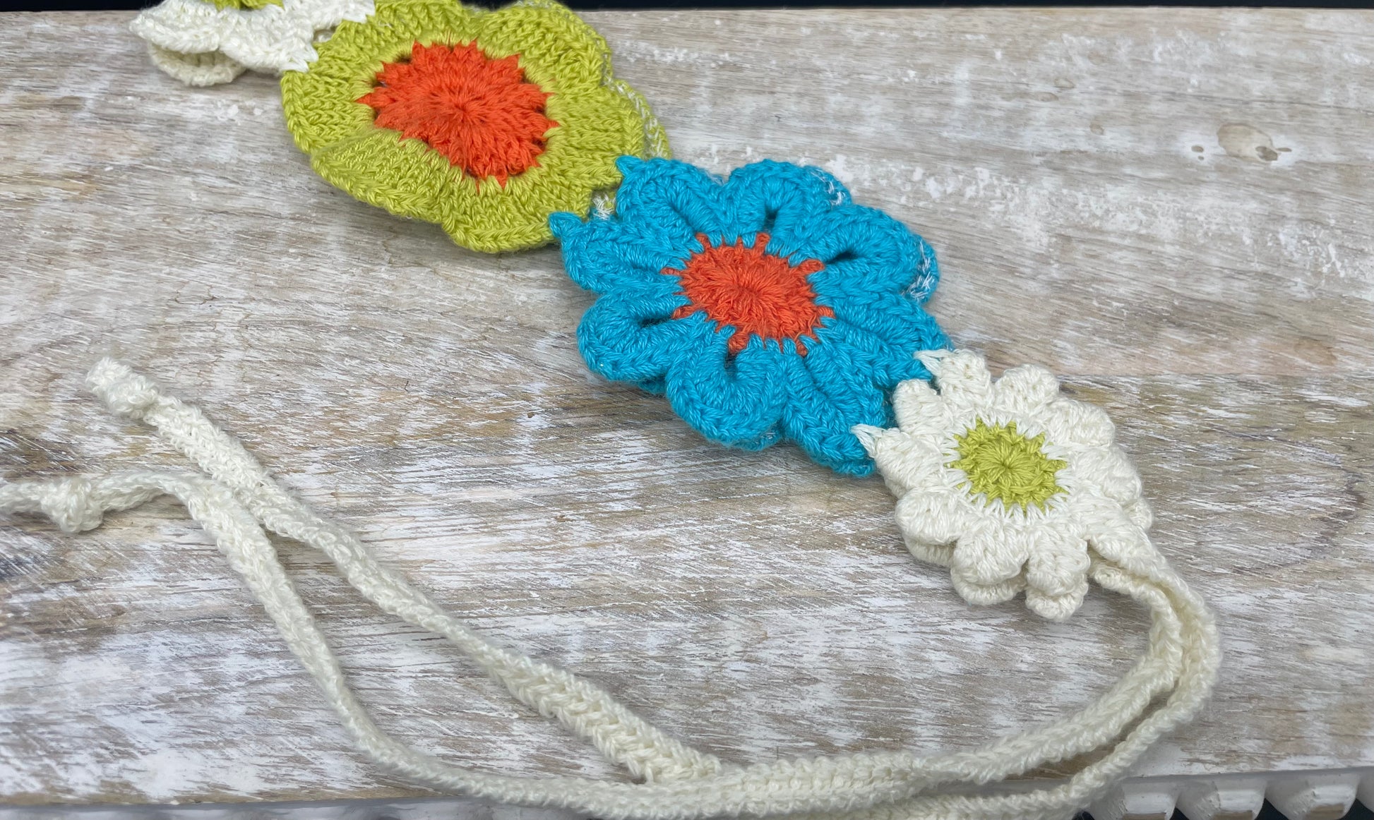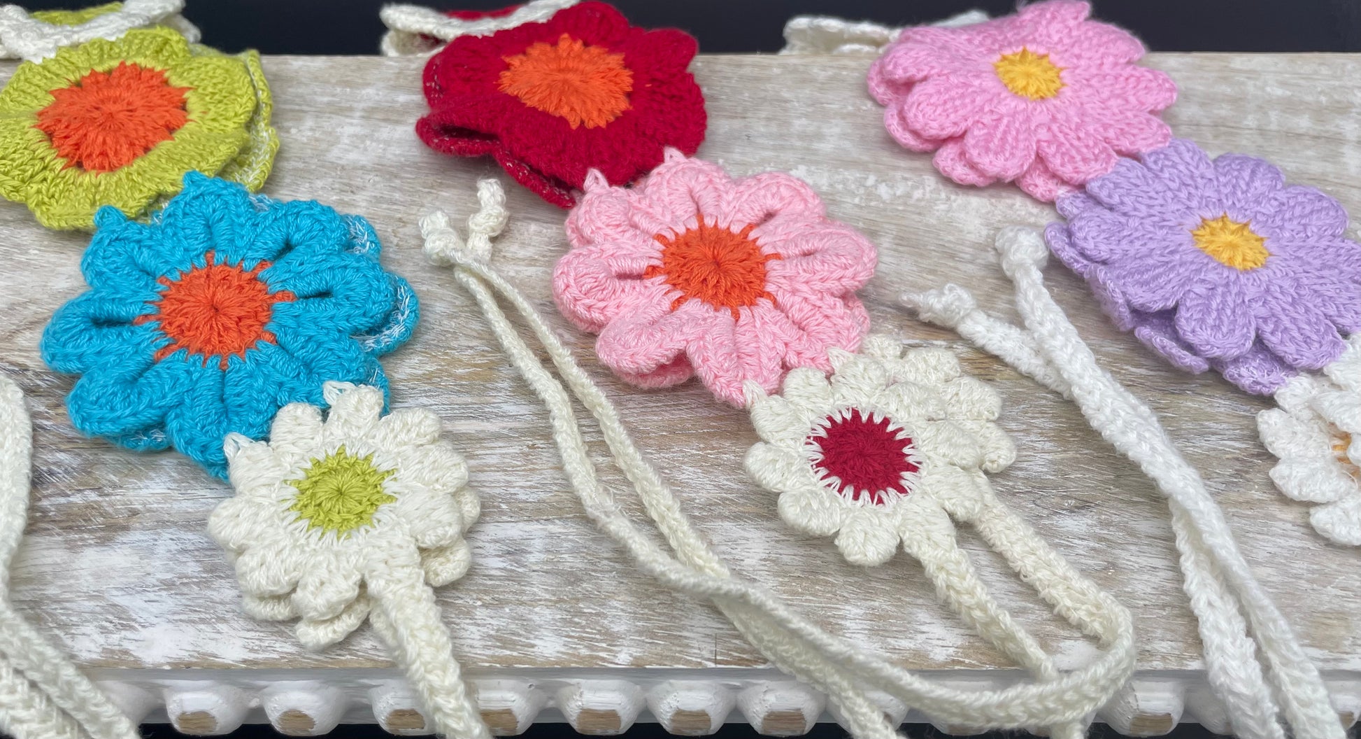 Bold and beautiful, our Floral Retro Hair Ties add a unique touch to any outfit. Hand-sewn crochet flowers and patterns make each tie one-of-a-kind. Wear as a headband or across your forehead for a stylish look. Choose your favorites from our new collection.