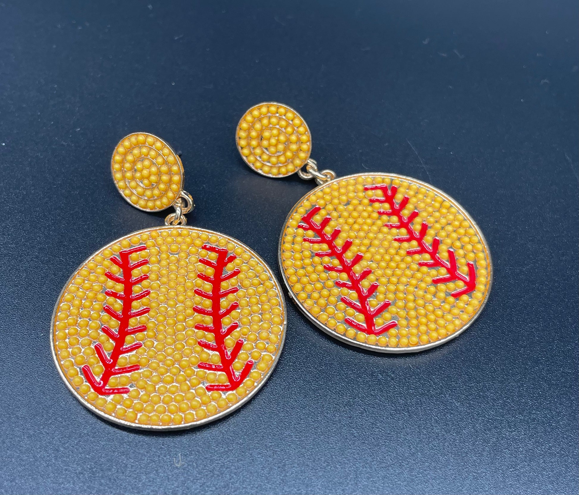 Score a style home run with these Gold Softball Earrings! The gold background is the perfect base for the red enamel stitching and yellow enamel beaded details, adding a pop of color to any outfit. A must-have accessory for any fashion-forward sports fan. Play ball!