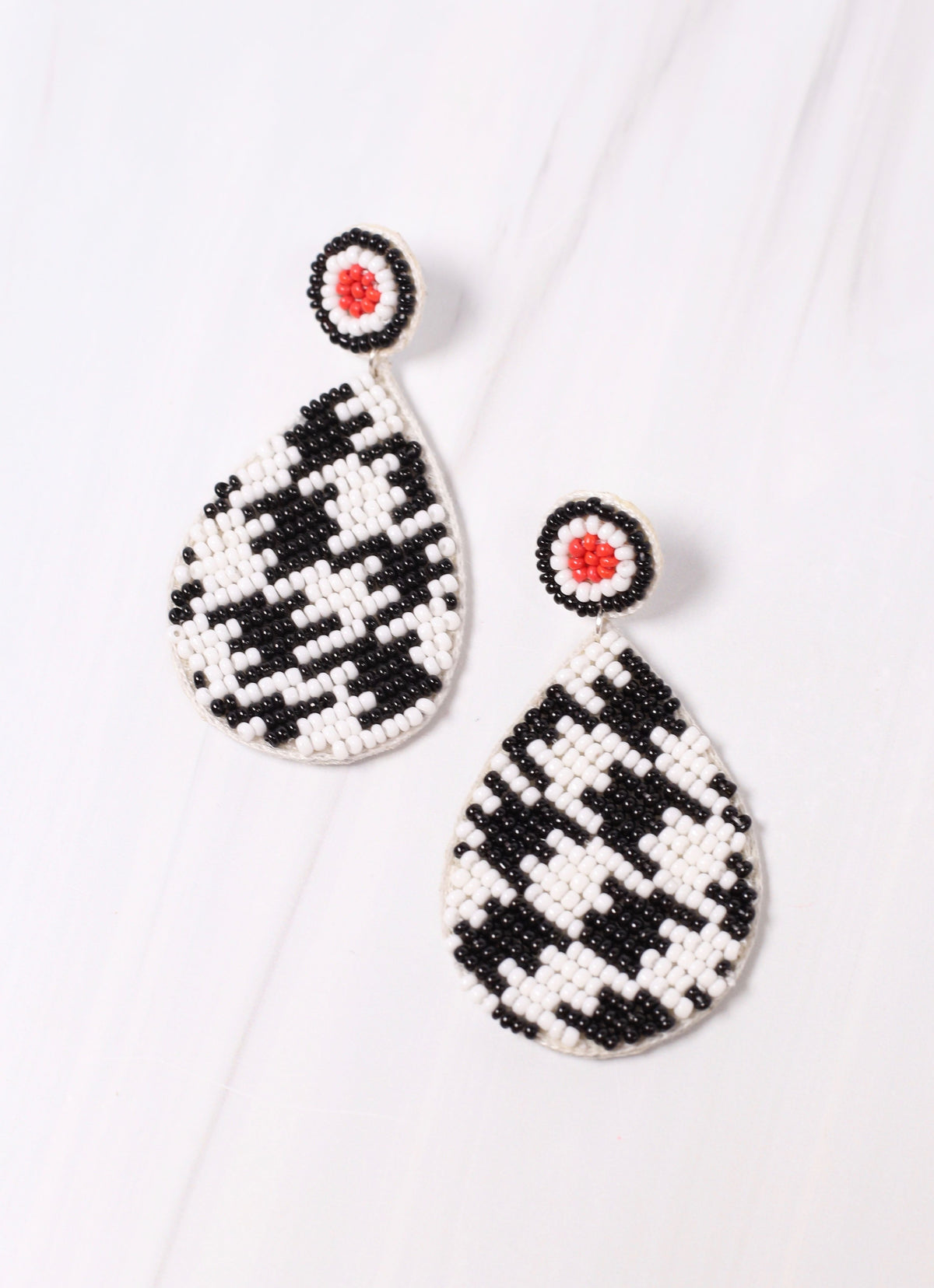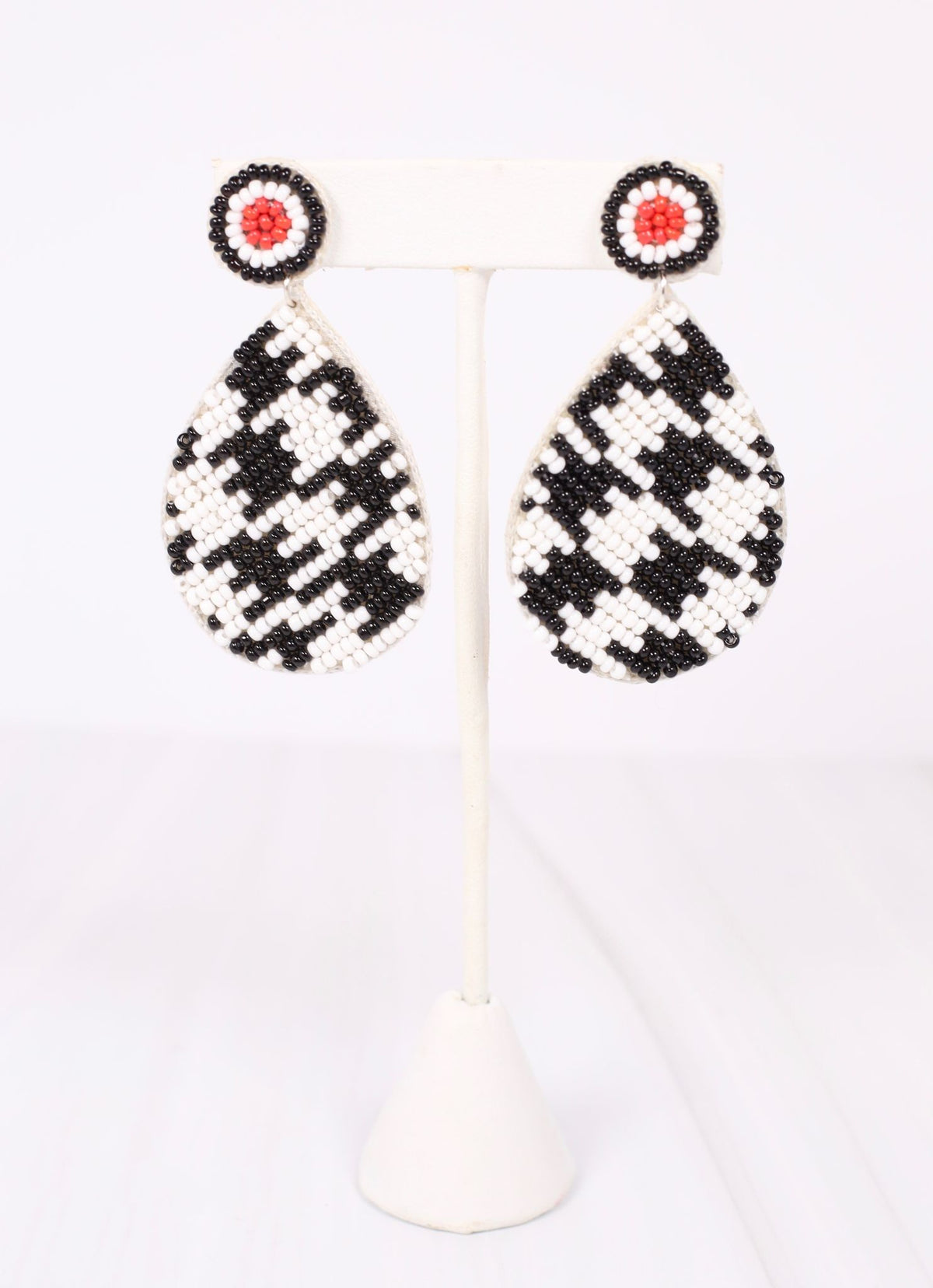 Get ready to show off your team spirit with our Houndstooth Earrings! These beaded earrings combine the classic black and white houndstooth pattern with a fun football season twist. Perfect for game days or any day you want to add a touch of patterned style to your outfit.