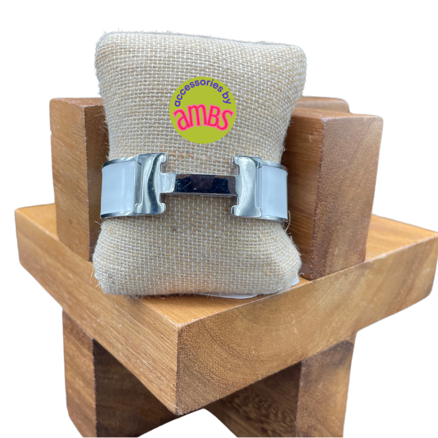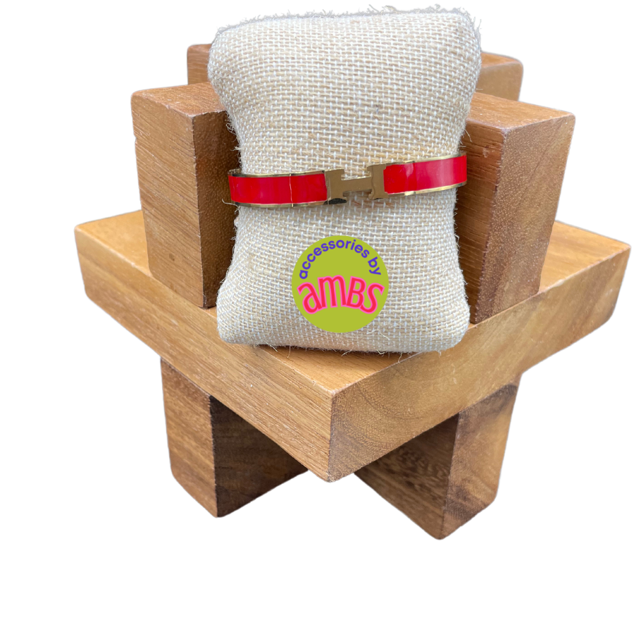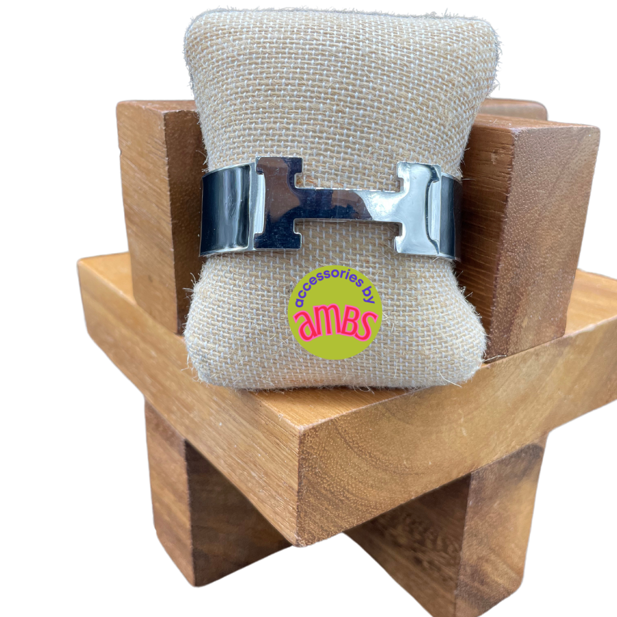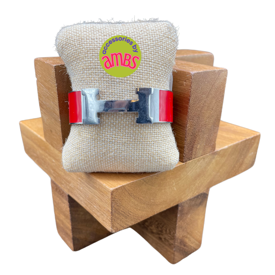 Introducing our designer-inspired Metal H Monogrammed Cuff. Make a classy statement with this cuff, available in red, white, and black with silver or gold monogram options. Step up your look with this classic piece.