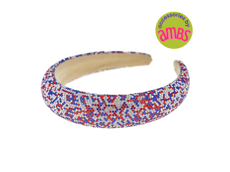 Add some sparkle to your patriotism with our Miss America rhinestone headband. Perfect for showing off your love for the red, white, and blue, while also adding a touch of glamour to any outfit. Get ready to shine like the star-spangled banner with this fully bedazzled headband.