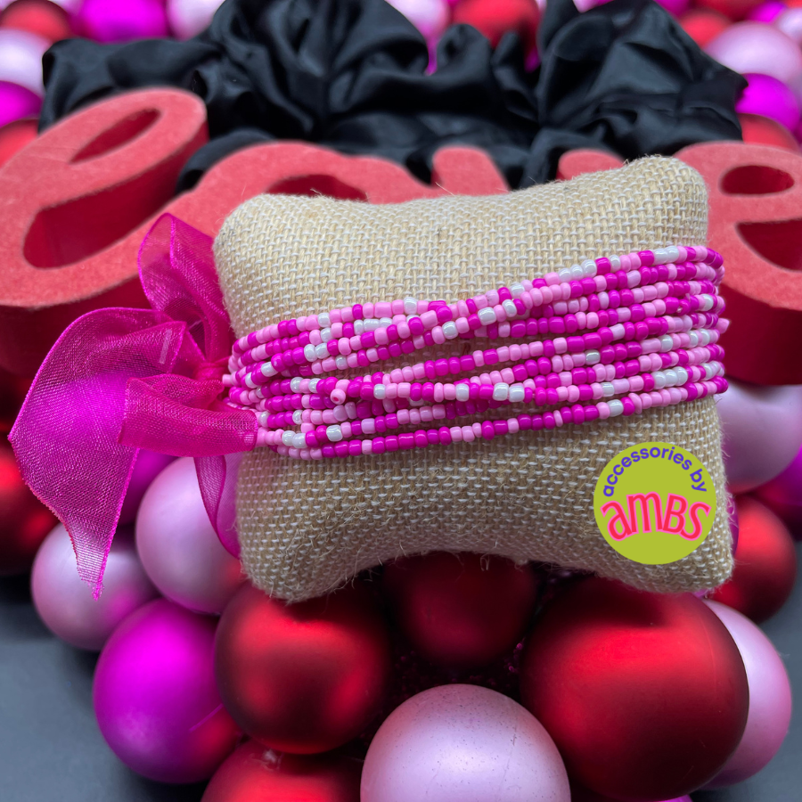 Add a touch of whimsy to your boho look with our Natural Seed Bead stacking Bracelets. Featuring all shades of pink, this bracelet is sure to channel your inner Barbie while adding a fantastic pop of color to any outfit. Level up your style game with this must-have accessory.
