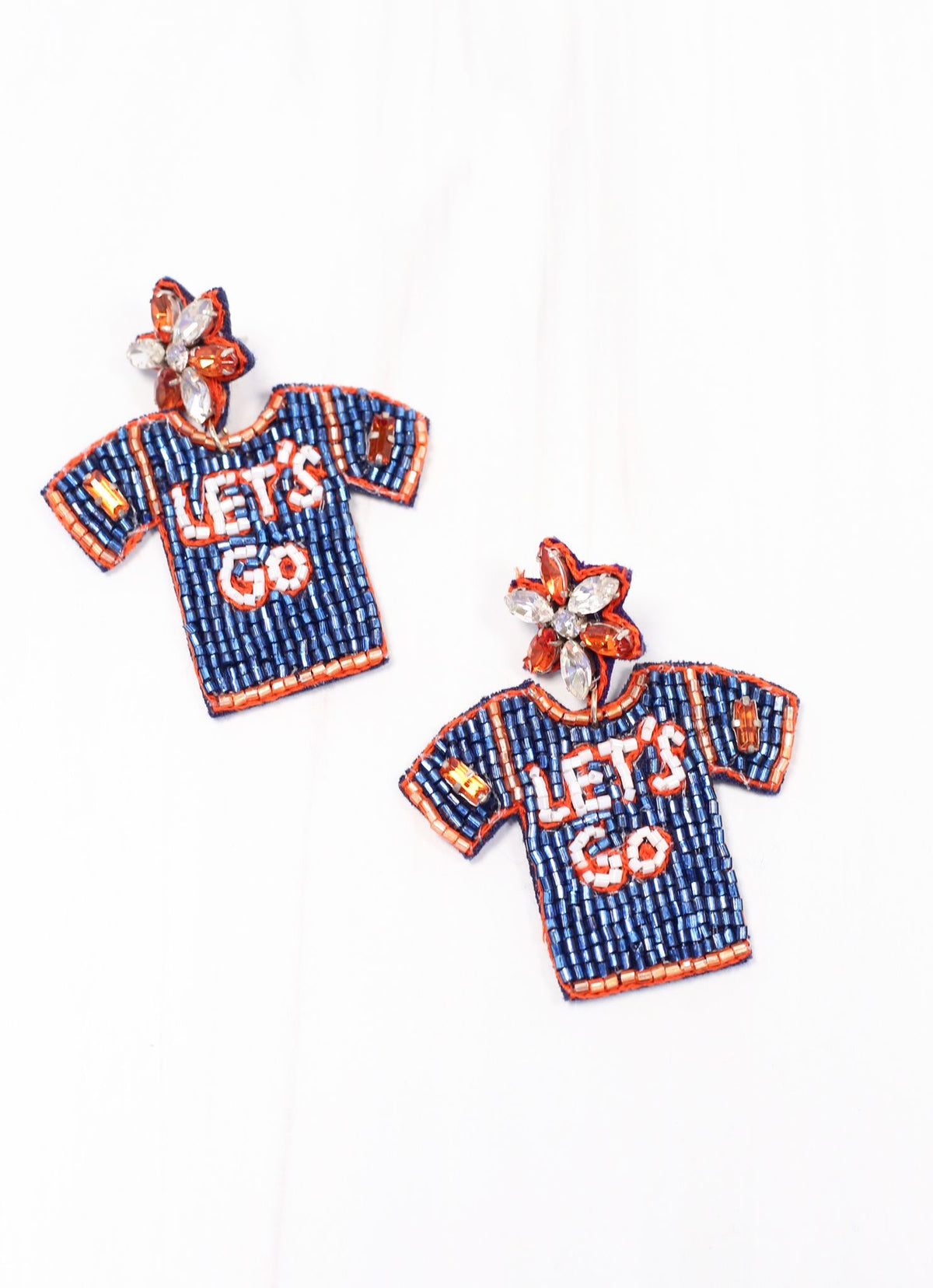 Navy and Orange Let's Go Jersey Beaded Earrings
