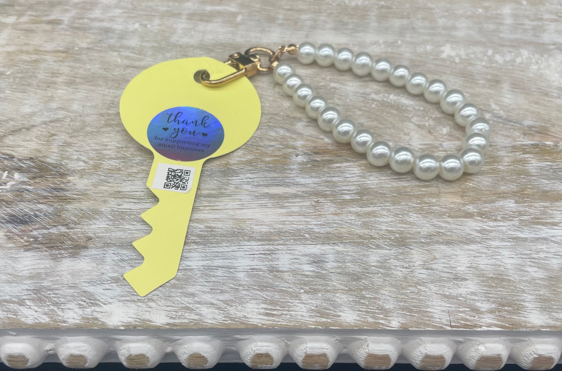 Expertly crafted, this pearl keychain features a luxurious strand of pearls that can be used as a wrist strap for your keys, wallet, or wristlet. Add a touch of sophistication and elegance to your everyday essentials with this sleek and functional accessory.