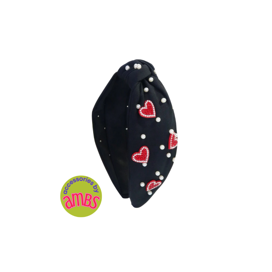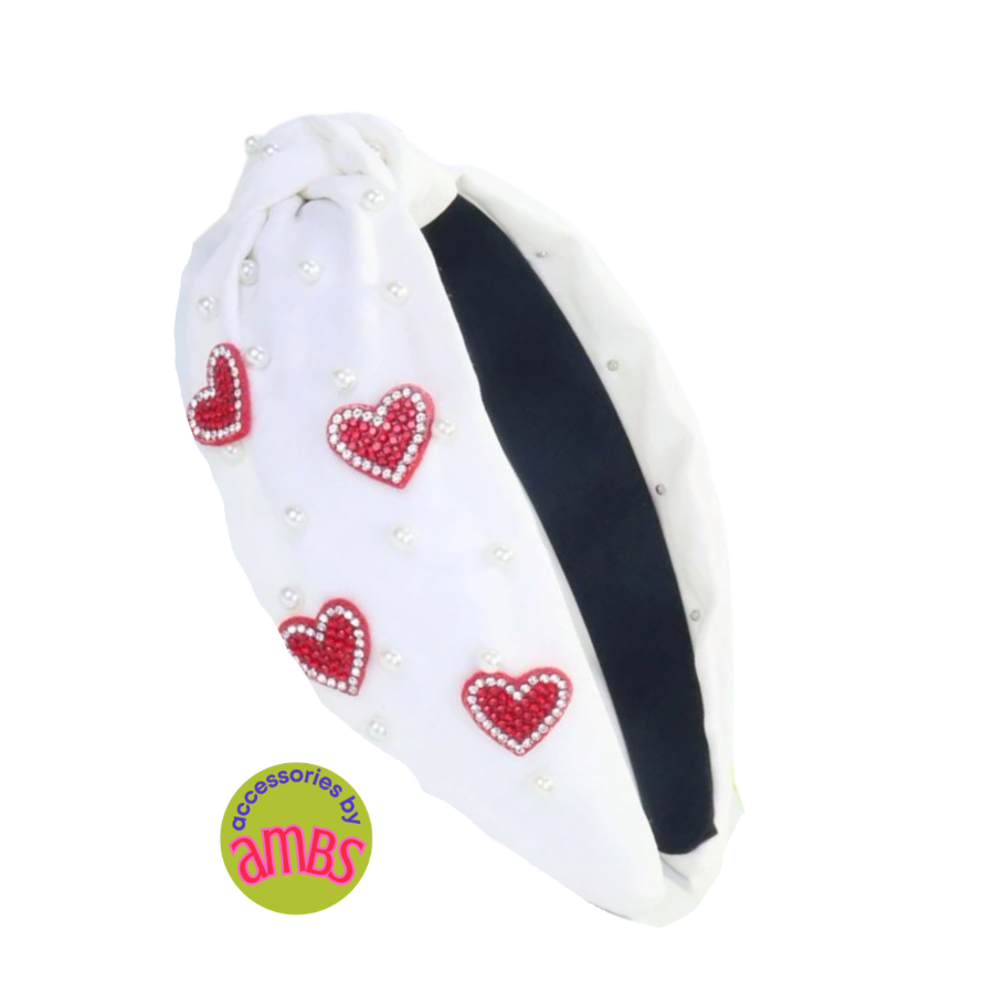 Elevate your style with our Queen of Hearts Headband. Available in white or black, these gorgeous headbands are adorned with rhinestone hearts and accented with pearls. Perfect for any event, let your inner queen shine with this statement accessory.