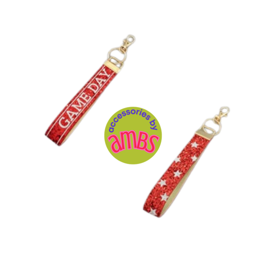 Add a touch of sporty style to your keys with our Red and White Gameday Key Straps. Featuring a vibrant red and white color scheme or a star design, this keychain is the perfect accessory for game day or everyday use. Keep your keys organized and show off your love for all things sports with this stylish keychain.