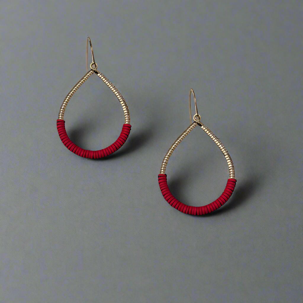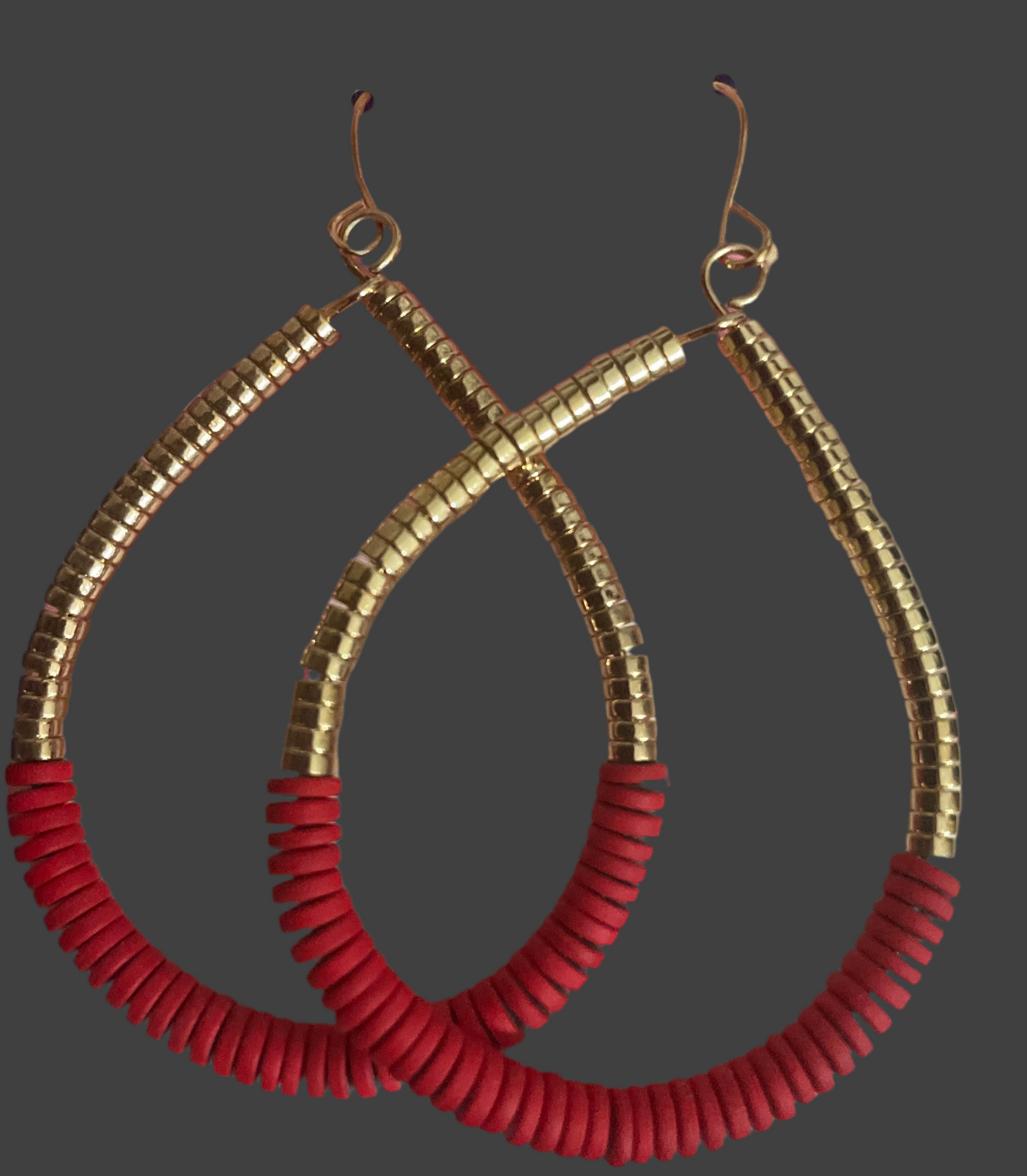Elevate your game day look with our Red Bead Teardrop earrings. The chunky red beads and sleek gold teardrop design add a sporty touch to any outfit, making them the perfect accessory for game day or to add a pop of color. Show off your team spirit in style with these stunning earrings.