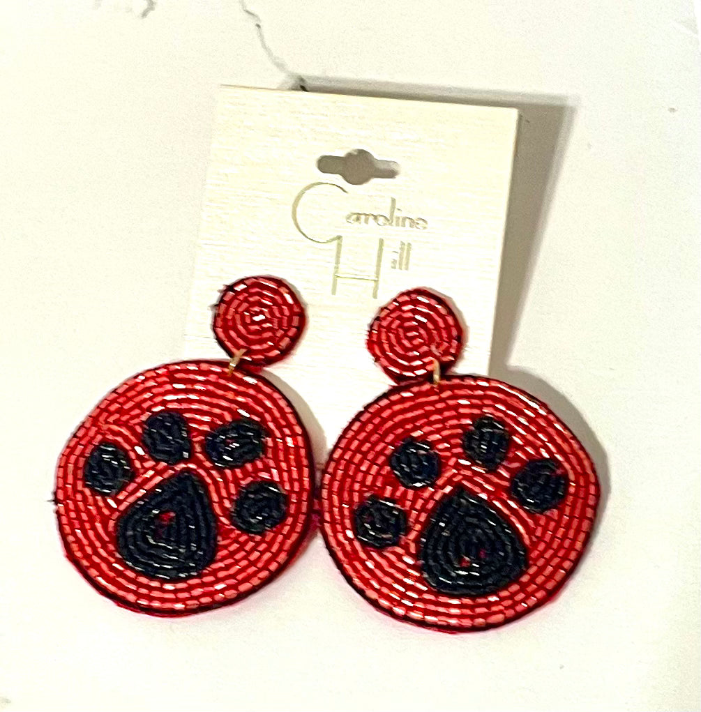 Unleash your bold style with our Red Paw Print Earrings! These seed bead and glass bead earrings feature a stunning red round design with a striking black paw print. Perfect for game day, these earrings will add a touch of glitz and glam to your look. Take a risk and show off your wild side!