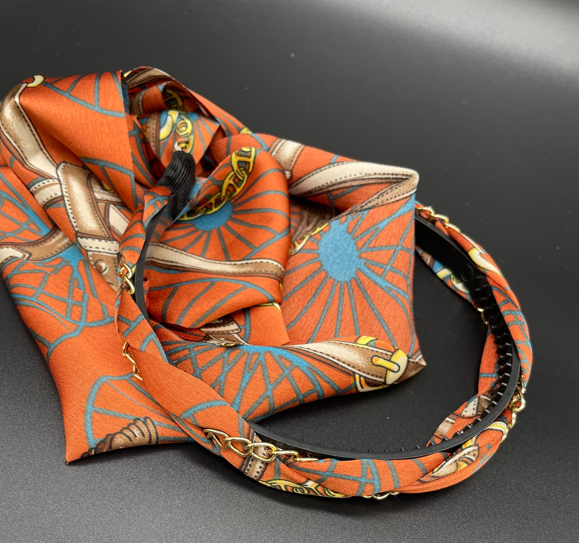 Transform your look with our Scarf and Chain Headband! This unique headband features a beautifully printed scarf and chain, adding a touch of elegance to any outfit. Easily tie it at the neck for a fun and stylish addition to your wardrobe.