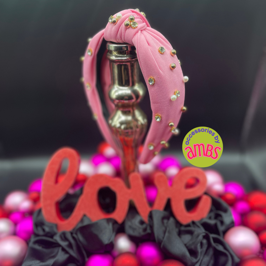 Elevate your style with our Think Pink Pearl Headband. This luxurious headband features a delicate baby pink knot adorned with elegant pearls, gold beads, and dazzling Rhinestone accents. Perfect for adding a touch of sophistication and glamour to any outfit.